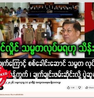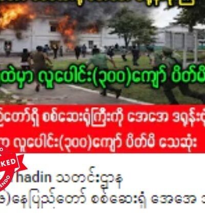 ရန်ကုန်မှာ တရုတ်သံရုံးကို PDF တွေ ဝင်စီးကား မီးရှို့လိုက်ပြီး ဒီဖြစ်စဉ်အတွင်းမှာ တရုတ်သံအမတ်ကြီး ပါဝင် လုံခြုံရဲတပ်ဖွဲ့ ၁၂ ဦး သေဆုံးခဲ့တယ်လို့ ရေးသားပြီး ဗွီဒီယိုတခု ယူကျူ့မှာ ပျံ့နှံ့မှု အားကောင်းလျက်ရှိတယ်။ နားလည်မှုလွဲမှာစေနိုင်တဲ့ ပြောဆိုမျှဝေမှုတွေသာဖြစ် တယ်။ ပျံ့နှံ့မှုအားကောင်းနေတဲ့ ဗွီဒီယိုပို့စ်တခုက ရယူထားတဲ့ စခရင်ရှော့ဓာတ်ပုံနဲ့ စာသားကောက်နုတ်ချက်ကို အောက်မှာကြည့်ပါ။ “တရုတ်သံရုံး PDF တွေ မီးရှို့ပြီ လုံခြုံရဲတပ်ဖွဲ့ (၁၂)ဦး ပွဲချင်းသေဆုံး ရန်ကုန်ရှိ တရုတ်သံရုံး PDF တွေ မီးရှို့၊ တရုတ်သံအမတ်ကြီး ပါဝင် လုံခြုံရဲတပ်ဖွဲ့ (၁၂) ဦး ပွဲချင်း သေဆုံး” Original link | Archive link အချက်အလက်စိစစ်ချက် ဗွီဒီယိုဖြန့်ဝေထားတဲ့ “Khit Thit […]