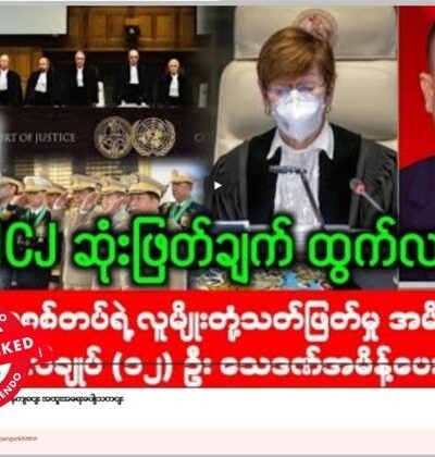 နိုင်ငံတကာ တရားရုံး(International Corut of Justice-ICJ)မှာ တရားစွဲခံရမှုမှာ နောက်ဆုံး အမိန့်ချလိုက်ပြီ လို့ဆိုထားတဲ့ ဗွီဒီယိုတွေ ယူကျူ့မှာ ဖြန့်ဝေနေပြီး ပျံ့နှံ့မှုအားကောင်းနေတာလည်း တွေ့ရတယ်။ သတင်းတုတွေသာဖြစ်တယ်။ ယူကျူ့ချန်နယ်တခုက ဖြန့်ဝေထားတဲ့ ပျံ့နှံ့မှုအားကောင်းနေတဲ့ ပြောဆိုချက်နဲ့ စခရင်ရှော့ဓာတ်ပုံကို အောက်မှာကြည့်ပါ။ “ICJ ဆုံးဖြတ်ချက် ထွက်လာပြီ မြန်မာစစ်တပ်ရဲ့ လူမျိုးတို့သတ်ဖြတ်မှု အမိန့်ချမှတ်၊ စစ်ဗိုလ်ချုပ် (၁၂) ဦး သေဒဏ်အမိန့်ပေးလိုက်ပြီ” Original link | Archive link အလားတူရေးသားဖြန့်ဝေမှုကို ဒီလင့်ခ်မှာလည်း တွေ့ရတယ်။ အချက်အလက်စိစစ်ချက် ဗွီဒီယိုဖြန့်ဝေထားတဲ့ “Khit Thit Media”အမည်နဲ့ ယူကျူ့ချန်နယ်ဟာ သတင်းလုပ်ငန်းလုပ်ကိုင်နေတဲ့ ရန်ကုန်ခေတ်သစ်သတင်းဌာနရဲ့ ယူကျူ့အမည်နာမကို တုပထားတဲ့ ချန်နယ်တခုဖြစ်တယ်။ ဒီချန်နယ်ဟာ သတင်းမီဒီယာတချို့က သတင်းတွေကို ပြန်လည်ကူးယူပြီး သတင်းခေါင်းစဉ်တုတပ်ကာ […]