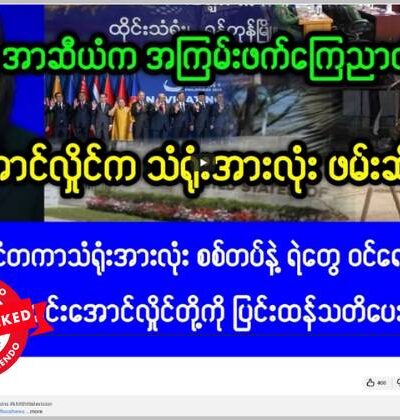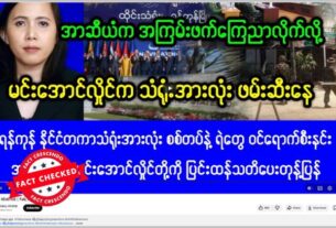 အာဆီယံက အကြမ်းဖက်ကြေညာလိုက်လို့ ရန်ကုန်မှာရှိတဲ့ နိုင်ငံတကာသံရုံးအားလုံးကို စစ်ခေါင်းဆောင် ဗိုလ်ချုပ်မှူးကြီးမင်းအောင်မင်းအောင်လှိုင်လက်အောက်ခံ စစ်တပ်နဲ့ ရဲက ဝင်ရောက်စီးနင်းနေတယ်လို့ ဆိုပြီး ဗွီဒီယိုတခု ယူကျူ့မှာ ပျံ့နှံ့မှုအားကောင်းနေတာ တွေ့ရပါတယ်။ သတင်းတု သာဖြစ်တယ်။ ပျံ့နှံ့မှုအားကောင်းနေတဲ့ ဗွီဒီယိုပို့စ် စခရင်ရှော့ဓာတ်ပုံနဲ့ စာသားကောက်နုတ်ချက်ကို အောက်မှာကြည့်ပါ။ ဒီဇင်ဘာ ၇ ရက်မှာ ဖြန့်ဝေခဲ့တဲ့ ဒီဗွီဒီယိုဟာ လက်ရှိအချိန်အထိ ကြည့်ရှု့မှုပေါင်း ၁ သိန်းကျော်ရရှိထားတယ်။ “အာဆီယံက အကြမ်းဖက်ကြေညာလိုက်လို့ မင်းအောင်လှိုင်က သံရုံးအားလုံး ဖမ်းဆီးနေ ရန်ကုန် နိုင်ငံတကာသံရုံးအားလုံး စစ်တပ်နဲ့ ရဲတွေ ဝင်ရောက်စီးနင်း အာဆီယံက မင်းအောင်လှိုင်တို့ကို ပြင်းထန်သတိပေးတုန့်ပြန် ”(မူရင်းအရေးအသား) Original link | Archive link အချက်အလက်စိစစ်ချက် ဗွီဒီယိုဖြန့်ဝေထားတဲ့ “Mandalay KhitThit”အမည်နဲ့ ယူကျူ့ချန်နယ်ဟာ သတင်းမီဒီယာတချို့က […]