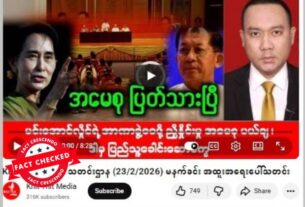 အာဏာသိမ်းစစ်ခေါင်းဆောင် ဗိုလ်ချုပ်မှူးကြီးမင်းအောင်လှိုင်ရဲ့ အာဏာခွဲဝေဖို့ ညှိနှိုင်းချက်ကို ဒေါ်အောင်ဆန်းစုကြည်က ပြတ်ပြတ်သားသား ပယ်ချလိုက်တယ်လို့ ဆိုထားတဲ့ ဗွီဒီယိုတွေ ယူကျူ့ချန်နယ်တခုက ဖြန့်ဝေထားရာမှာ ပျံ့နှံ့မှုအားကောင်းနေတာတွေ့ရတယ်။ သတင်းတု ဖြစ်တာတွေ့ရတယ်။ ပျံ့နှံ့မှုအားကောင်းနေတဲ့ ပို့စ်က ရယူထားတဲ့ စခရင်ရှော့ဓာတ်ပုံနဲ့ စာသားကောက်နုတ်ချက်ကို အောက်မှာကြည့်ပါ။ အလားတူတဲ့ မျှဝေမှုကို ဒီနေရာမှာလည်း တွေ့ရတယ်။ “အမေစု ပြတ်သားပြီ မင်းအောင်လှိုင်ရဲ့ အာဏာခွဲဝေဖို့ ညှိနှိုင်းမှု အမေစု ပယ်ချ” Original link | Archive link အချက်အလက်စိစစ်ချက် ဒီလိုအာဏာခွဲဝေဖို့ အာဏာသိမ်းစစ်ခေါင်းဆောင်က ဒေါ်အောင်ဆန်းစုကြည်နဲ့ ဆွေးနွေးညှိနှိုင်း လာတယ် ဆိုတဲ့အကြောင်း အခု သတင်းခေါင်းစဉ်တုတပ် ဗွီဒီယိုမှာလည်း မပါဝင်သလို တခြား ယုံကြည်ရတဲ့ သတင်းအရင်းအမြစ်တွေမှာလည်း ဖော်ပြချက်မတွေ့ရပါဘူး။ ဗွီဒီယိုဖြန့်ဝေထားတဲ့ “Khit Thit Media”အမည်နဲ့ […]