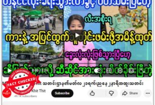 တနိုင်ငံလုံး ခရီးသွားလာခွင့်ပိတ်သိမ်းလိုက်ပြီး ကားနဲ့အပြင်ထွက်သူတိုင်း ကို ဖမ်းဆီးဖို့ စစ်ကောင်စီ အမိန့်ထုတ်ကာ ဆီဆိုင်တွေလည်း ပိတ်သိမ်းလိုက်ပြီလို့ ဆိုထားတဲ့ ဗွီဒီယိုကို ယူကျူ့ချန်နယ်တခုက ဖြန့်ဝေထားတာမှာ ပျံ့နှံ့မှုအားကောင်းနေတယ်။ နားလည်မှုလွဲစေနိုင်တဲ့ သတင်းတုဖြစ်တယ်။ ပျံ့နှံ့မှုအားကောင်းနေတဲ့ ဗွီဒီယိုပို့စ်တခုက ရယူထားတဲ့ စခရင်ရှော့ဓာတ်ပုံနဲ့ စာသားကောက်နုတ်ချက်ကို အောက်မှာကြည့်ပါ။ တူညီတဲ့ မျှဝေမှုကို ဒီနေရာမှာလည်း တွေ့ရတယ်။ “တနိုင်ငံလုံး ခရီးသွားလာခွင့် ပိတ်သိမ်းပြီဟေ့ ကားနဲ့ အပြင်ထွက်တိုင်းဖမ်းဖို့အမိန့်ထုတ် ဆီပြတ်သွားလို့ ဆီဆိုင်အားလုံး ပိတ်ခိုင်းပြီတဲ့” Original link | Archive link အချက်အလက်စိစစ်ချက် ဆီဆိုင်အားလုံး ပိတ်ခိုင်းလိုက်ပြီး တနိုင်ငံလုံးခရီးသွားလာခွင့် ပိတ်သိမ်းကာ ကားနဲ့ အပြင်ထွက်တဲ့သူတိုင်းကို ဖမ်းဖို့ အမိန့်ထုတ်တယ်ဆိုတဲ့အကြောင်း သတင်းလုပ်ငန်းလုပ်ကိုင်နေတဲ့ အဓိကကျတဲ့ မီဒီယာတွေမှာ ဖော်ပြချက် မတွေ့ရပါဘူး။ ယုံကြည်ရလောက်တဲ့ သတင်းအရင်းအမြစ်တွေမှာ […]