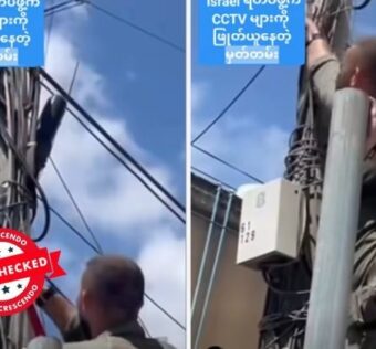 အီရန်က စောင့်ကြည့်ကင်မရာတွေကို အသုံးပြုပြီး တိုက်ခိုက်မှာ စိုးရိမ်ပြီး အစ္စရေးက စောင့်ကြည့် ကင်မရာတွေ လိုက်လံဖြုတ်ပစ်နေတယ်လို့ ပြောဆိုဖြန့်ဝေနေတဲ့ ဗွီဒီယိုတခု ဖေ့စ်ဘွတ်မှာ ပျံ့နှံ့မှု အားကောင်းခဲ့တာ တွေ့ရတယ်။ ယူနီဖောင်းဝတ် လုံခြုံရေးတဦးလို့ ယူဆရတဲ့ သူက စောင့်ကြည့်ကင်မရာတွေကို ဖျက်ဆီး နေတာကို ဒီဗွီဒီယိုထဲမှာ တွေ့ရတယ်။ ဒီ စောင့်ကြည့်ကင်မရာတွေ ဖျက်ဆီးနေတဲ့ ဗွီဒီယိုဟာ ၂၀၂၅ ခုနှစ်အတွင်းက အစ္စရေးမှာ ဖြစ်ပျက်ခဲ့တဲ့ ဖြစ်စဉ်တခုက ဖြစ်ပြီး လက်ရှိ စစ်ပွဲနဲ့ သက်ဆိုင်ခြင်း မရှိတာတွေ့ရတယ်။ ပျံ့နှံ့မှုအားကောင်းနေတဲ့ ဗွီဒီယိုပို့စ်တခုက ရယူထားတဲ့ စခရင်ရှော့ဓာတ်ပုံနဲ့ စာသားကောက်နုတ်ချက်ကို အောက်မှာကြည့်ပါ။ “အွန်လိုင်းပေါ်မှာ ပျံ့နှံ့နေတဲ့ vdo တွေအရ Israel ရဲတပ်ဖွဲ့တွေဟာ Iran မှ ပစ်ခတ်သော မစ်ဆိုင်းများ Israel […]