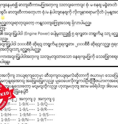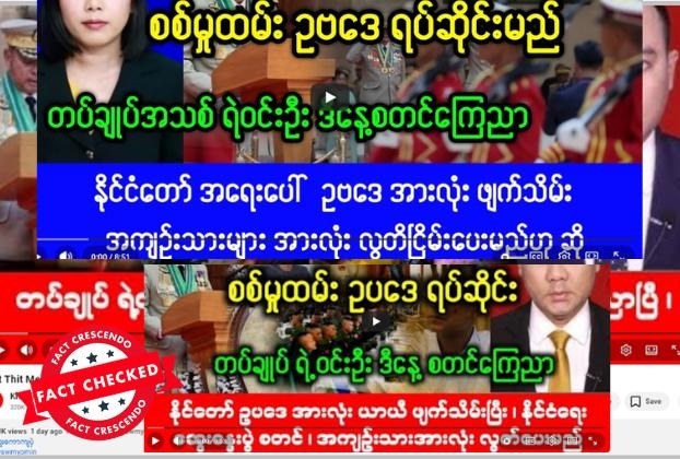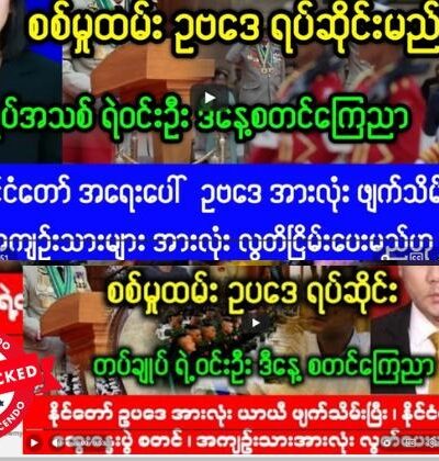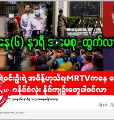 အရေးပေါ် ဥပဒေတွေအပါအဝင် စစ်မှုထမ်း ဥပဒေ ရပ်ဆိုင်းဆိုင်းကြောင်း တပ်ချုပ်သစ်ကြေညာလိုက်တယ်လို့ ဆိုထားတဲ့ ဗွီဒီယိုတွေ ယူကျူ့မှာ ပျံ့နှံ့မှုအားကောင်းနေတာ တွေ့ရတယ်။ သတင်းတု ဖြန့်ချိ နေခြင်း ဖြစ်တယ်။ ပျံ့နှံ့မှုအားကောင်းနေတဲ့ ယူကျူ့ချန်နယ်တခုမှာ ဖော်ပြထားတဲ့ ဗွီဒီယိုပို့စ် စခရင်ရှော့ဓာတ်ပုံနဲ့ စာသားကောက်နုတ်ချက်ကို အောက်မှာကြည့်ပါ။ တူညီတဲ့ မျှဝေမှုကို ဒီနေရာမှာလည်းတွေ့ရတယ်။ “စစ်မှုထမ်း ဥပဒေ ရပ်ဆိုင်းမည် တပ်ချုပ်အသစ် ရဲဝင်းဦး ဒီနေ့စတင်ကြေညာ နိုင်ငံတော် အရေးပေါ် ဥဗဒေ အားလုံး ဖျက်သိမ်း အကျဉ်းသားများ အားလုံး လွတိငြိမ်းပေးမည်ဟု ဆို” Original link | Archive link အချက်အလက်စိစစ်ချက် အရေးပေါ် ဥပဒေတွေအပါအဝင် စစ်မှုထမ်း ဥပဒေ ရပ်ဆိုင်းဆိုင်းကြောင်း တပ်ချုပ် ဗိုလ်ချုပ်ကြီး ရဲဝင်းဦးက ကြေညာတယ်ဆိုတာ […]