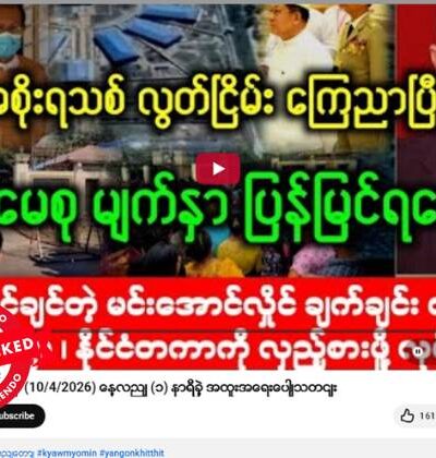 မြန်မာစစ်တပ်တိုက်လေယာဉ်တွေကို ပစ်ချဖို့ လေယာဉ်ပစ်ဒုံးကျည်တွေ အမျိုးသားညီညွှတ်ရေးအစိုးရ(NUG)ဆီ အမေရိကန်က ပေးပို့လိုက်တယ်လို့ ဆိုပြီး ယူကျူ့ချန်နယ်တခုက ဖြန့်ဝေနေတာဟာ သတင်းတုသာဖြစ်တယ်။ ပျံ့နှံ့မှုအားကောင်းနေတဲ့ ဗွီဒီယိုပို့စ်တခုက ရယူထားတဲ့ စခရင်ရှော့ဓာတ်ပုံနဲ့ စာသားကောက်နုတ်ချက်ကို အောက်မှာကြည့်ပါ။ “အမေရိကန် ကြားဖြတ် ဝင်လာပြီဟေ့ လေယာဉ်ပစ်လက်နက်ကြီး NUG ကို ပို့ပေးပြီ အမေရိကန်မှ အကြမ်းဖက်စစ်တပ်ရဲ့ တိုက်လေယာဉ်တွေကို ပစ်ချဖို့ လေယာဉ်ပစ်ဒုံးကျည်တွေ NUGကို့ပို့ပေးပြီ” Original link | Archive link အချက်အလက်စိစစ်ချက် အမေရိကန်အစိုးရမှ လေယာဉ်ပစ်ကာကွယ်ရေး လက်နက်တွေကို အမျိုးသားညီညွတ်ရေးအစိုးရ (NUG) ဆီ ပို့ဆောင်ပေးခဲ့ကြောင်း သတင်းများထွက်ပေါ်နေတယ်လို့ “Khit Thit Thadin”အမည်နဲ့ ယူကျူ့ချန်နယ်က ၄င်းတို့ သတင်းဗွီဒီယိုထဲမှာ ပြောဆိုထားပေမဲ့ လက်ရှိအချိန်အထိ အမေရိကန်အစိုးရ ဒါမှမဟုတ် NUG ဘက်က […]