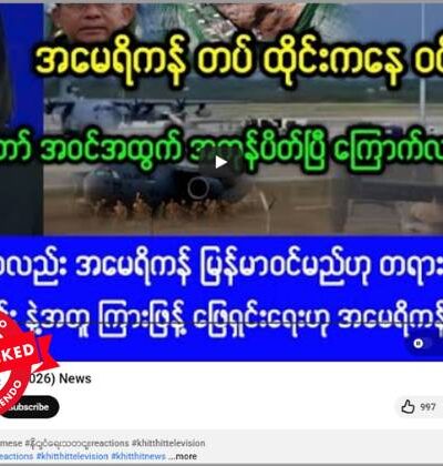 အစ္စရေးရဲ့ ဒီမိုနာ(Dimona) နျူး ကလီးယား ဓာတ်ပေါင်းဖိုတိုက်ခိုက်မယ့် အစီအစဉ်မှာ ပထမဆုံးအကြိမ်အဖြစ် ရုပ်လုံးထွက်ပြပြီး အနီးကပ်ကွပ်ကဲနေတဲ့ အီရန် ခေါင်းဆောင်သစ် မိုဂ်ျတာဘာ ခါမေနီ(Mojtaba Khamenei)လို့ ဆိုပြီး ဗွီဒီယိုတခု ဖေ့စ်ဘွတ်မှာ ပျံ့နှံ့မှု အားကောင်းခဲ့တာ တွေ့ရတယ်။ တကယ်တော့ ဗွီဒီယိုဟာ AI နဲ့ပြုလုပ်ထားတဲ့ အထောက်အထားတွေ တွေ့ရပါတယ်။ မြန်မာဘာသာနဲ့ ဖြန့်ဝေထားပြီး ပျံ့နှံ့မှုအားကောင်းနေတဲ့ ဗွီဒီယိုပို့စ်တခုက ရယူထားတဲ့ စခရင်ရှော့ဓာတ်ပုံနဲ့ စာသားကောက်နုတ်ချက်ကို အောက်မှာကြည့်ပါ။ တူညီတဲ့ မျှဝေမှုတွေကို ဒီနေရာ၊ ဒီနေရာနဲ့ ဒီနေရာမှာလည်း တွေ့ရတယ်။ “အီရန်က မိုတာဘက်ချ်ခါမေနီ၏ video ကို ပထမဆုံးထုတ်ပြန်။ စစ်ဆင်ရေးခန်းမအတွင်း ဝင်ရောက်လာပုံဖြစ်ပြီး နံရံတွင်ဖော်ပြထားသော မြေပုံသည် အစ္စရေးနူကလီးယားဓာတ်ပေါင်းဖိုဖြစ်သည်။” Original link | Archive link […]