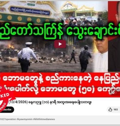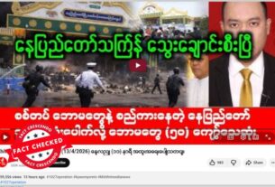 နေပြည်တော်မှာ သကြန်အကြိုနေ့က ပေါက်ကွဲမှုဖြစ်ပွားခဲ့ပြီး အများအပြား ထိခိုက်သေဆုံးခဲ့တယ်လို့ ဆိုထားတဲ့ ဗွီဒီယိုတွေ ယူကျူ့မှာ ပျံ့နှံ့မှုအားကောင်းနေတာ တွေ့ရပါတယ်။ သတင်းတု သာဖြစ်တယ်။ ပျံ့နှံ့မှုအားကောင်းနေတဲ့ ဗွီဒီယိုရဲ့ စခရင်ရှော့ဓာတ်ပုံ၊ စာသားကောက်နုတ်ချက်တွေကို အောက်မှာကြည့်ပါ။ ဧပြီ ၁၃ ရက်မှာ ဖြန့်ဝေထားတဲ့ ဒီဗွီဒီယိုဟာ လက်ရှိအချိန်အထိ ကြည့်ရှု့မှုပေါင်း ၆၀၀၀၀ ဝန်းကျင်ရရှိထားတယ်။ အလားတူတဲ့ ဖြန့်ဝေမှုကို ဒီနေရာ၊ ဒီနေရာနဲ့ ဒီနေရာမှာလည်း တွေ့ရတယ်။ “နေပြည်တော်သင်္ကြန် သွေးချောင်းစီးပြီ စစ်တပ် ဘောမတွေနဲ့ စည်ကားနေတဲ့ နေပြည်တော် သကြန် ဗုံးပေါက်လို့ ဘောမတွေ (၅၀) ကျော်သေဆုံး”(မူရင်းအရေးအသား) Original link | Archive link အချက်အလက်စိစစ်ချက် ဗွီဒီယိုအစမှာပြသတဲ့ ရုပ်ကတ်နဲ့ ဗွီဒီယိုထဲမှာ သင်္ကြန်အကြိုနေ့ အခမ်းအနားတွေ […]