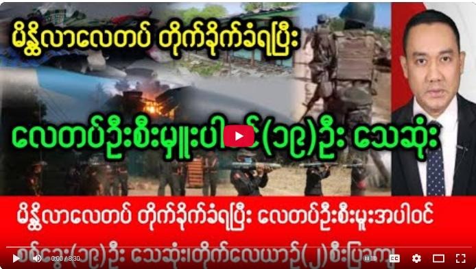 ၈ မိနစ်ကျော်ရှည်လျားတဲ့ ဗွီဒီယိုထဲမှာ နောက်ထပ်ဖော်ပြထားတာက ရန်ကုန်ခေတ်သစ်သတင်းဌာန ကဖော်ပြခထဲ့တဲ့ “အနောက်မြောက်တိုင်း စစ်ဌာနချုပ်ထဲကို ရော့ကတ်များဖြင့် ပစ်ခတ် တိုက်ခိုက်မှု စစ်တပ်ဘက်မှ အရာရှိ ၅ ဦး အပါအဝင် ၁၂ ဦး သေဆုံးပြီး ရိက္ခာဂိုဒေါင် ၂ လုံးပြိုကျ ပျက်စီး”၊ လူထုနွေဦးသတင်းဌာနက ဖော်ပြခဲ့တဲ့”မကွေး၊ပဲခူးနဲ့ရခိုင်အစပ်တို့မှာ တိုက်ပွဲတွေ ပြင်းထန်နေ”စတဲ့ သတင်းတွေကို ပြန်လည်ဖော်ပြထားတယ်။