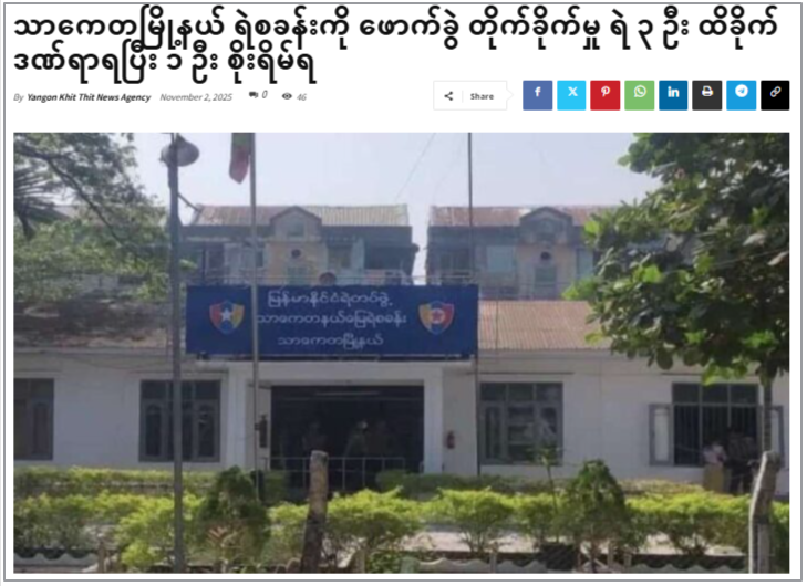 သာကေတရဲစခန်းကို မြို့ပြပျောက်ကျား အဖွဲ့တဖွဲ့က လက်ပစ်ဗုံးနဲ့ ပစ်ခတ်တိုက်ခိုက်ခဲ့တာကို သတင်းမီဒီယာ တချို့မှာ ဖော်ပြခဲ့ပေမဲ့ တိုက်ခိုက်ခဲ့တဲ့ ဖြစ်စဉ်နဲ့ ပတ်သက်တဲ့ ဗွီဒီယို ထွက်ပေါ်လာခြင်းမရှိပါဘူး။ လူမှုကွန်ယက်မှာ ပျံ့နှံ့ခဲ့တဲ့ ဗွီဒီယိုဟာ သာကေတရဲစခန်း ဝင်ပေါက် ဓာတ်ပုံကို အသုံးပြုပြီး AI နည်းပညာနဲ့ ဖန်တီးထားတဲ့ ဗွီဒီယိုသာဖြစ်တယ်။