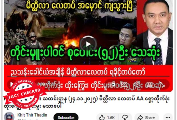 Title:Fact Check: မိတ္ထီလာလေတပ်စခန်းကို AA က ရှော့တိုက် ဒုံးနဲ့ပစ်ခတ်မှု တိုင်းမှုးအပါ ၅၂ ဦးသေဆုံးတဲ့ သတင်းတု