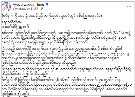 ၅ မိနစ်ဝန်းကျင်ရှည်လျားတဲ့ ဒီဗွီဒီယိုထဲမှာ နောက်ထပ် ဖော်ပြထားကတော့ ရန်ကုန်ခေတ်သစ် သတင်းဌာနကဖော်ပြခဲ့တဲ့ “ရန်ကုန်တိုင်း၊ လှိုင်သာယာမြို့နယ်၊ ဘုရင့်နောင်တံတားအဆင်းတွင် စစ်တပ်နှင့်ရဲများက မှတ်ပုံတင်စစ်ဆေးပြီး ငွေညှစ်မှုများ အကြီးအကျယ် လုပ်နေ”ဆိုတဲ့ သတင်းပဲဖြစ်တယ်။
