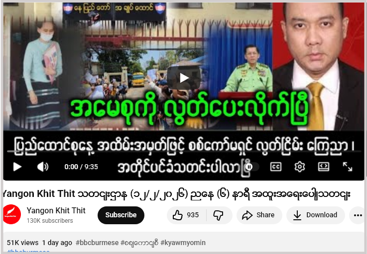 ပြည်ထောင်စုနေ့မှာ ဒေါ်အောင်ဆန်းစုကြည်နဲ့ သမ္မတဦးဝင်းမြင့် ပြန်လည်လွတ်မြောက်လာပြီလို့ ဆိုထားတဲ့ ဗွီဒီယို ယူကျူ့မှာ ပျံ့နှံ့မှုအားကောင်းနေတာ တွေ့ရပါတယ်။ သတင်းတု ဖြန့်ချိမှုဖြစ်တယ်။