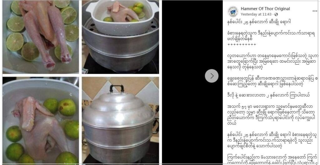 သံပုရာသီးနဲ့ ကြက်သားကို ပေါင်းစားရင် ဆီးချိုရောဂါကိုပျောက်ကင်းစေနိုင်တယ်လို့ဆိုထားတဲ့ ပို့စ်တွေ ဖေ့စ်ဘွတ်အသုံးပြုသူတွေ အကြားမှာ  ပျံ့နှံ့မှုအားကောင်းနေတာ တွေ့ရပါတယ်။ နားလည်မှုလွဲစေနိုင်တဲ့ သတင်းမှား တခုဖြစ်တယ်။