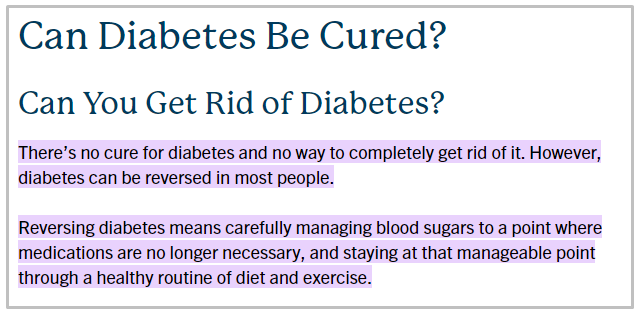 တကယ်တော့ ဒီပြောဆိုမျှဝေချက်ဟာ မှားယွင်းပါတယ်။ လက်ရှိအချိန်အထိ ဆီးချိုရောဂါကို ပျောက်ကင်းအောင် ကုသနိုင်တဲ့ ဆေးဝါး သို့မဟုတ် အစားအသောက်မရှိသေးပါဘူး။