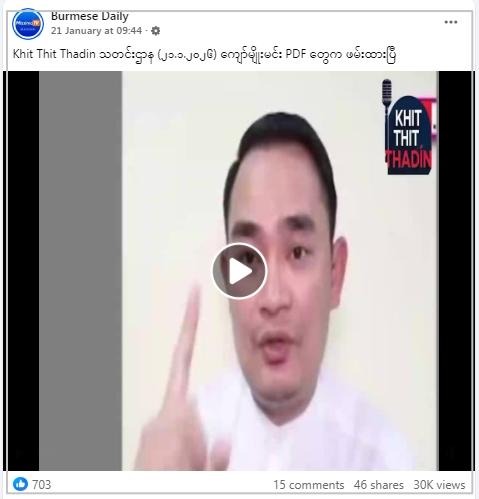 “Khit Thit Thadin သတင်းဌာန (၂၁.၁.၂၀၂၆) ကျော်မျိုးမင်း PDF တွေက ဖမ်းထားပြီ”