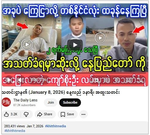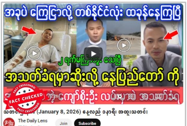 ဗွီဒီယိုကို ဖြန့်ဝေထားတဲ့ “The Daily Lens”အမည်နဲ့ ယူကျူ့ချန်နယ်ဟာ သတင်းမီဒီယာ တချို့မှာဖော်ပြခဲ့တဲ့ သတင်းတွေနဲ့ လုံးဝ လုပ်ကြံပြောဆိုတာတွေကို ရောနှော ဖြန့်ချိမှုတွေ ပြုလုပ်ဖြန့်ချိတဲ့ နေရာဖြစ်တယ်။ ဒီချန်နယ်နဲ့ ပတ်သက်ပြီး Fact Crescendo M yanmar ရဲ့ အချက်အလက်စိစစ်ချက် တွေကို ဒီလင့်ခ်မှာ ကြည့်ပါ။