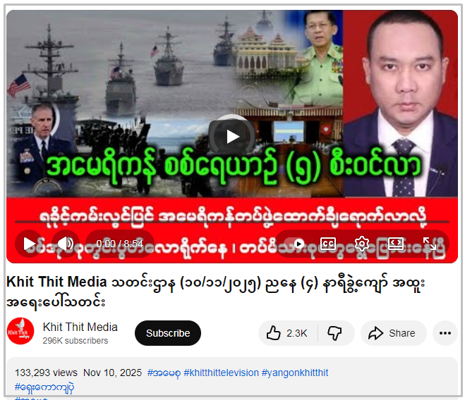 အမေရိကန်တပ်ဖွဲ့ထောင်ချီပါဝင်တဲ့ အမေရိကန် စစ်ရေယာဉ် ၅ စီး ရခိုင်ကမ်းလွန်ကို ဝင်ရောက်လာတယ်ဆိုတဲ့ ဗွီဒီယို ယူကျူ့မှာ ပျံ့နှံ့မှုအားကောင်းနေတာ တွေ့ရပါတယ်။ သတင်းတုဖြန့်ချိနေခြင်းဖြစ်တယ်။