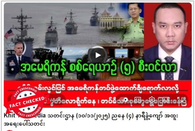 ဒီလိုပဲ အမေရိကန်စစ်သင်္ဘောတွေ ရခိုင်ပြည်နယ်ကို ဝင်လာပြီဆိုပြီးတော့ ပြီးခဲ့တဲ့လထဲမှာလည်း သတင်းတု ဖြန့်ခဲ့သေးပြီး Fact Crescendo Myanmar က အချက်အလက် စိစစ်ထားတာကို ဒီလင့်ခ်မှာ ကြည့်ပါ။