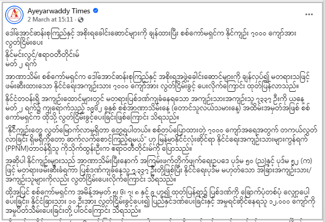 အခုလည်း ဗွီဒီယိုထဲမှာ တကယ်တမ်းဖော်ပြထားတဲ့အကြောင်းအရာဟာ ဧရာဝတီတိုင်းမ် သတင်းဌာနက မတ် ၂ရက်မှာ ဖော်ပြခဲ့တဲ့ “ဒေါ်အောင်ဆန်းစုကြည်နှင့် အစိုးရခေါင်းဆောင်များကို ချန်ထားပြီး စစ်ကော်မရှင်က နိုင်ကျဉ်း ၇၀၀၀ ကျော်အား လွတ်ငြိမ်းပေး”ဆိုတဲ့ သတင်းကို ပြန်လည်ဖော်ပြထားတယ်။