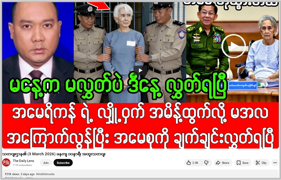 ဒီလိုပြောဆိုပြီး ဗွီဒီယို ဖြန့်ဝေထားတဲ့ “The Daily Lens”အမည်နဲ့ ယူကျူ့ချန်နယ်ဟာ သတင်းမီဒီယာတချို့က သတင်းတွေကို ပြန်လည် ကူးယူဖော်ပြရာမှာ သတင်းခေါင်းစဉ်တုတပ်ပြီး ဖြန့်ဝေတာ၊ လုပ်ကြံရေးသား ပြောဆိုချက်တွေ ဖြန့်ဝေတာတွေ ပြုလုပ်တဲ့ ချန်နယ် တခုဖြစ်တယ်။ ဒီချန်နယ်နဲ့ ပတ်သက်ပြီး Fact Crescendo Myanmar မှာ အချက်အလက်စိစစ်ချက် မကြာခဏ ဖော်ပြခဲ့ပြီးဖြစ်တယ်။
