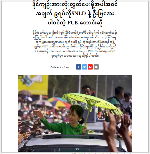 တကယ်တမ်း ဗွီဒီယိုထဲမှာ ဖော်ပြထားတဲ့အကြောင်းအရာတွေဟာ ဒေါ်အောင်ဆန်းစုကြည်၊ ဦးဝင်းမြင့်အပါအဝင် နိုင်ငံရေးအကျဉ်းသား အားလုံးကို ခြွင်းချက်မရှိ အမြန်ဆုံး လွှတ်ပေးဖို့နဲ့ လူငယ်တွေကို အတင်းအဓမ္မ ဖမ်းဆီးတာ၊ စစ်မှုထမ်းခိုင်းခြင်းများကို လုံးဝမပြုလုပ်ရန် နိုင်ငံရေးအင်အားစုတွေ စုပေါင်းထားတဲ့ PCB အဖွဲ့က တောင်းဆိုတဲ့ သတင်းနဲ့ တခြားသော သတင်းတွေကို ပြန်လည်ဖော်ပြထားတယ်။