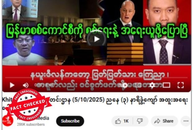 မြန်မာစစ်ကောင်စီကို စစ်ရေးအရ အရေးယူဖို့ နယူးဇီလန်က တိုက်တွန်းခဲ့တယ်ဆိုတဲ့ ဗွီဒီယို ယူကျူ့ချန်နယ် တခုက ဖြန့်ဝေထားတာမှာ ပျံ့နှံ့မှုအားကောင်းနေတာ တွေ့ရပါတယ်။ နားလည်မှုလွဲစေနိုင်တဲ့ သတင်း ခေါင်းစဉ်တု ဖြစ်တာတွေ့ရတယ်။