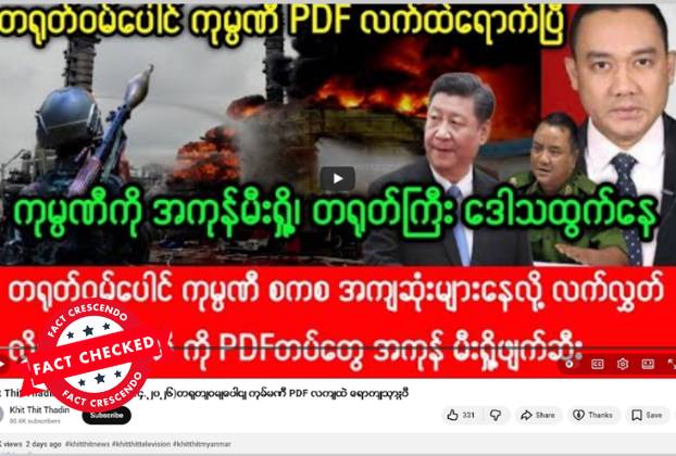 “Khit Thit Thadin”ယူကျူ့ချန်နယ်ဟာ လုံးဝလုပ်ကြံရေးသားဖြန့်ဝေမှုတွေ ဒါမှမဟုတ် သတင်းမီဒီယာတချို့က သတင်းတွေကို ပြန်လည်ဖော်ပြပြီး သတင်းခေါင်းစဉ်တုဖြန့်ချိတာ ပြုလုပ်တဲ့နေရာဖြစ်တယ်။ အခုလည်း စစ်ကိုင်းတိုင်း ဆားလင်းကြီးမြို့နယ်က ဝမ်ပေါင်ကုမ္ပဏီကို PDF တွေက တိုက်ခိုက် သိမ်းပိုက်လိုက်ပြီဆိုတာ သတင်းတုသာဖြစ်ပြီး ယုံကြည်ရလောက်တဲ့ သတင်းအရင်းအမြစ်တွေမှာ ဖော်ပြချက်မရှိပါဘူး။