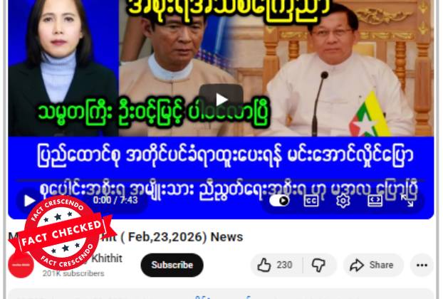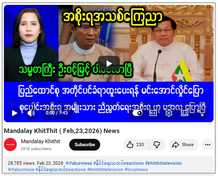 ဒီလိုပြောဆိုပြီး ဗွီဒီယို ဖြန့်ဝေထားတဲ့ “Mandalay KhitThit”အမည်နဲ့ ယူကျူ့ချန်နယ်ဟာ သတင်းမီဒီယာ တချို့က သတင်းတွေကို ပြန်လည်ကူးယူ၊ ခေါင်းစဉ်တုတပ် ဖြန့်ဝေတာတွေ ပြုလုပ်တဲ့ ချန်နယ် တခုဖြစ်တယ်။ ဒီချန်နယ်နဲ့ ပတ်သက်ပြီး Fact Crescendo Myanmar အနေနဲ့ အချက်အလက်စိစစ်ချက် မကြာခဏ ဖော်ပြခဲ့ပြီးဖြစ်တယ်။ ဒီလင့်ခ်မှာ ကြည့်ပါ။