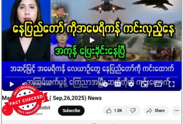 Title:Fact Check: နေပြည်တော်ကို အကြမ်းဖက်အဖြစ် ကြေညာပြီး အမေရိကန်က လေယာဉ်တွေနဲ့ ဆက်တိုက်ကင်းလှည့်တဲ့ သတင်းတု