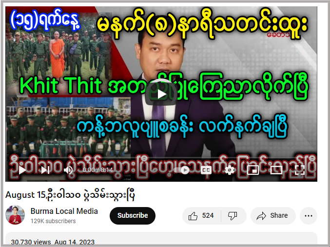 အောက်ပါစာသားတွေကတော့ ပျံ့နှံ့မှုအားကောင်းနေတဲ့ ပို့စ်တခုက စာသားကောက်နုတ်ချက်ဖြစ်ပါတယ်။ ဩဂုတ် ၁၅ ရက်ကမျှဝေထားတဲ့ ဒီဗွီဒီယိုကို ကြည့်ရှု့မှုပေါင်း ၃ သောင်းကျော်ရှိပါတယ်။
