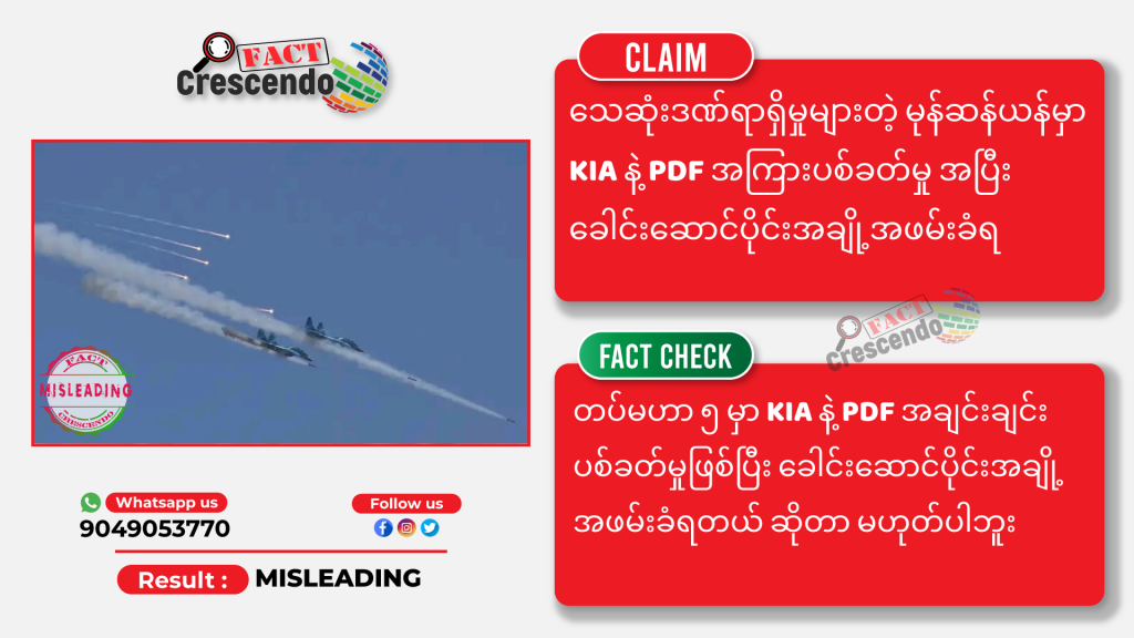 Title:Fact Check: KIA နဲ့ PDF များကြားပစ်ခတ်မှုတွေဖြစ်ပွားပြီး ခေါင်းဆောင်အချို့ အဖမ်းခံရဆိုတဲ့ သတင်းတု