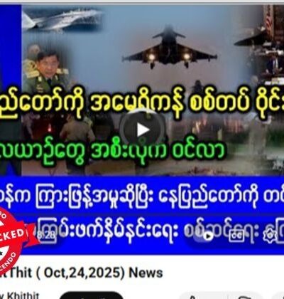 ငွေကြေးလိမ်လည်မှုနဲ့ နေပြည်တော်ကို အမေရိကန်စစ်တပ် ဝိုင်းထားပြီး ဗုံကြဲလေယာဉ်တွေလည်း ဝင်လာပြီ ဆိုတဲ့ ဗွီဒီယိုတွေ ယူကျူ့မှာ ပျံ့နှံ့မှုအားကောင်းနေတာတွေ့ရပါတယ်။ သတင်းတု သတင်းမှားသာဖြစ်တယ်။ ပျံ့နှံ့မှုအားကောင်းနေတဲ့ ဗွီဒီယိုပို့စ် စခရင်ရှော့ဓာတ်ပုံနဲ့ စာသားကောက်နုတ်ချက်ကို အောက်မှာကြည့်ပါ။ အောက်တိုဘာ ၂၄ ရက်မှာ ဖြန့်ဝေထားတဲ့ ဒီဗွီဒီယိုဟာ ကြည့်ရှု့မှုပေါင်း ၈၀၀၀၀ ဝန်းကျင်ရရှိထားတယ်။ အလားတူတဲ့ ဖြန့်ဝေမှုတွေကို ဒီနေရာနဲ့ ဒီနေရာမှာလည်းတွေ့ရတယ်။ “နေပြည်တော်ကို အမေရိကန် စစ်တပ် ဝိုင်းထားပြီ ဗုံးကြဲလေယာဉ်တွေ အစီးလိုက် ဝင်လာ အမေရိကန်က ကြားဖြန့်အမှုဆိုပြီး နေပြည်တော်ကို တင်းကြပ် နိုင်ငံတကာ အကြမ်းဖက်နှိမ်နှင်းရေး စစ်ဆင်ရေး ကြေညာ” Original link | Archive link အချက်အလက်စိစစ်ချက် ဗွီဒီယိုဖြန့်ဝေထားတဲ့ “Mandalay KhitThit”အမည်နဲ့ ယူကျူ့ချန်နယ်ဟာ သတင်းမီဒီယာတချို့က […]